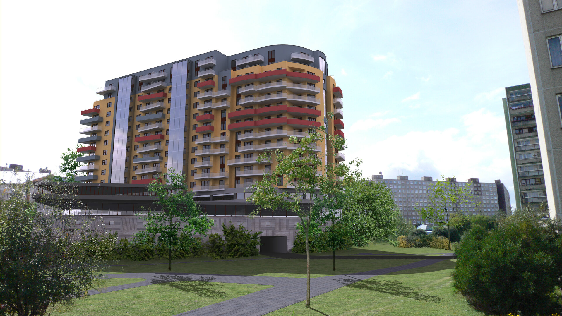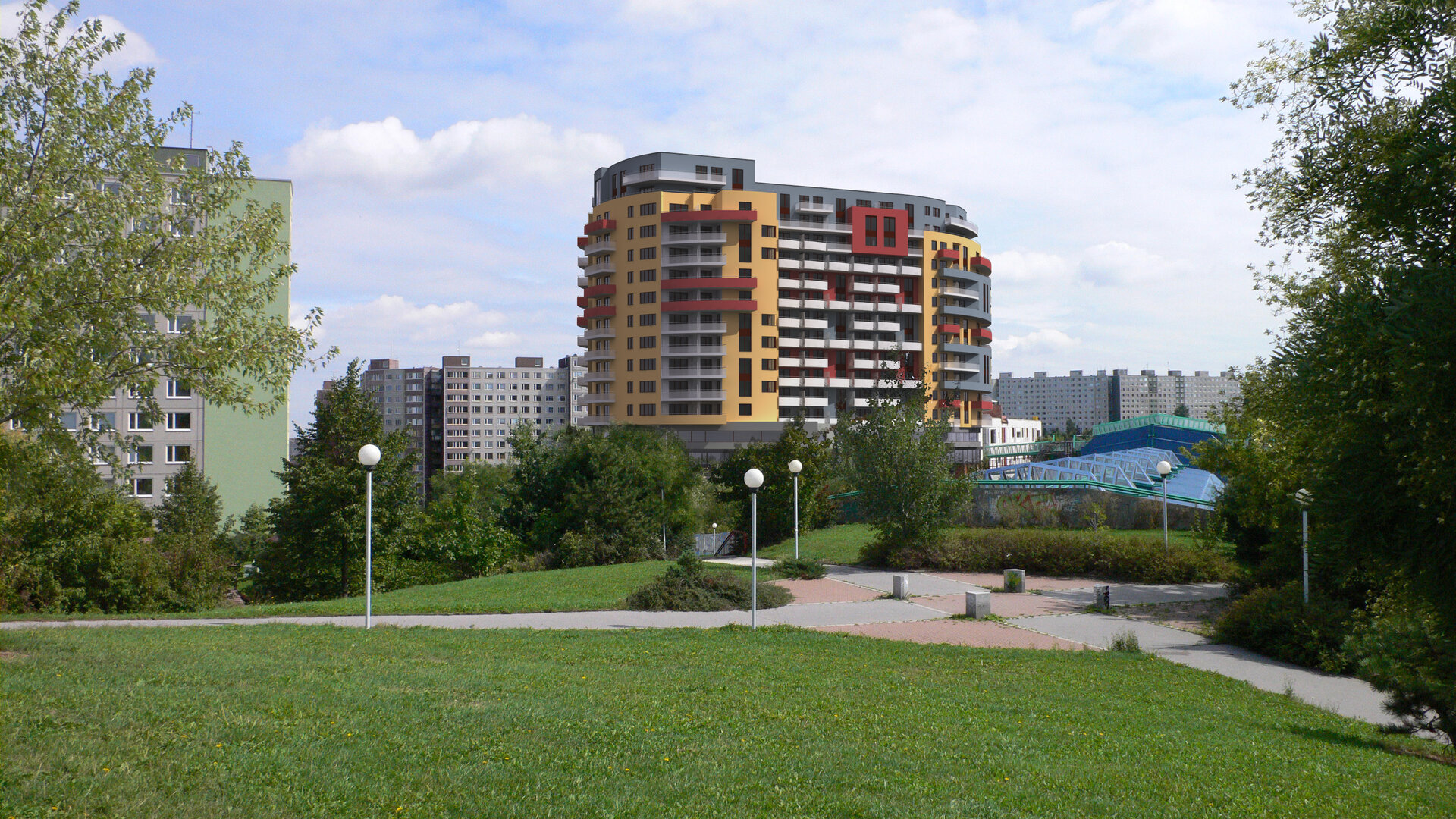Bytový dům na polyfunkční podnoži u stanice metra Luka, Praha 13